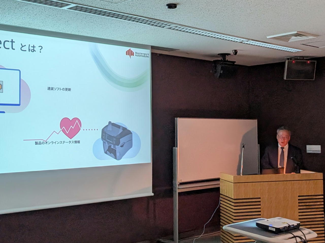 日本CDRが販売している紙幣鑑定機の製造工場は台湾のMasterwork Automodules です。MAJapanは日本法人で日本CDRとソフトウェアの共同開発を行っています。前述のとおり、ヨーロッパ(イタリア)で実際に導入されている窓口の紙幣鑑定機と銀行管理本部及び行政当局をクラウドで結び、現場での取引に関するデータをリアルタイムに情報共有が可能なオンライン仕様管理システムについて実機デモが行われました。