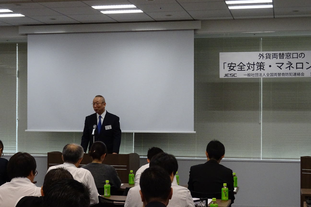 昔から、オリンピックと万博の開催国は偽造が多く出回る傾向にあります。本日のJESCセミナーでは新手偽造や両替詐欺の手口についてよく学習され、犯人が「二度と行きたくない」と、思うような両替所になっていただくことを願って、私の挨拶とさせていただきます。」