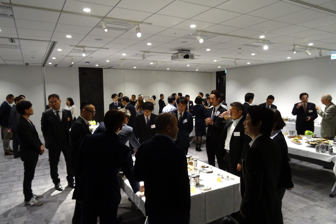 皆様、おつかれさまでした。会場の料理は帝国ホテルのビュッフェですので美味しいと好評です。歓談と同時に意見交換、名刺交換がすすみます。
