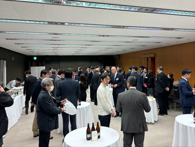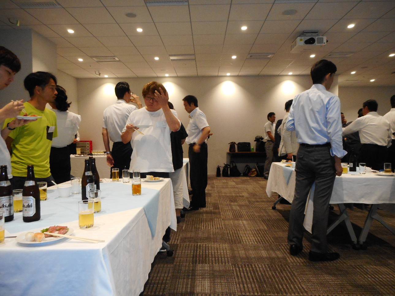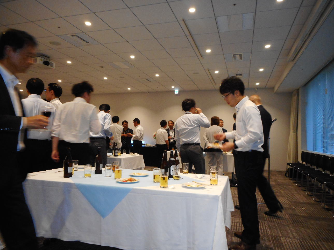 セミナーのテーマが相当に固い内容のため、参加者の皆様はややお疲れの様子です。セミナー会場の隣の部屋に立食式の懇親会場を用意いたしました。殆どの皆様がセミナーに引き続き参加されました。